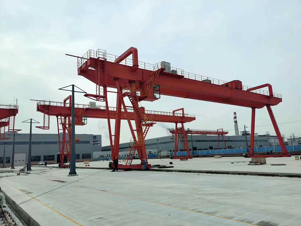 它的金屬結構像門形框架,承載主梁下安裝兩條支腳,可以直接在地面的軌道上行走,主梁兩端可以具有外伸懸臂梁。