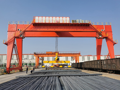 它的金屬結構像門形框架,承載主梁下安裝兩條支腳,可以直接在地面的軌道上行走,主梁兩端可以具有外伸懸臂梁。